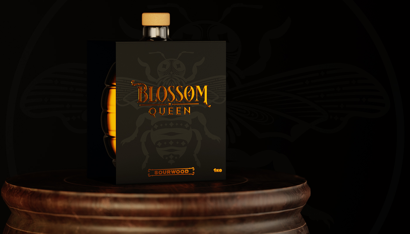 Blossom Queen是一個(gè)致力于為消費(fèi)者提供最優(yōu)質(zhì)蜂蜜的品牌,我們的使命就是從提到這個(gè)行業(yè)的重要組成部分“蜜蜂”開始,為這個(gè)品牌建立一個(gè)標(biāo)識(shí),設(shè)計(jì)一瓶玻璃瓶,提醒每個(gè)人蜂蜜來自“蜂巢”,使其與市場(chǎng)上的任何瓶子或容器有所不同。最后用一個(gè)豪華的包裝把它包起來,提供更多關(guān)于每個(gè)罐子里裝的東西的信息。