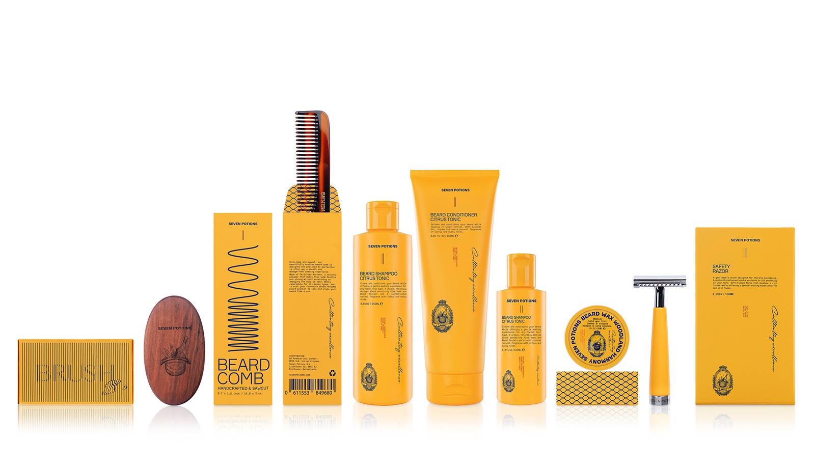 Seven Potions是一個總部位于倫敦的品牌,為現(xiàn)代紳士提供美容產(chǎn)品。當包裝設(shè)計師在設(shè)計他們的視覺語言和包裝時,努力追求真實性和專業(yè)性。品牌設(shè)計師設(shè)計了一個標志,散發(fā)出該品牌獨特的故事,抓住了古典與現(xiàn)代之間的平衡。該符號的靈感來源于定義英國歷史的標志,而版式則與現(xiàn)代保持聯(lián)系。