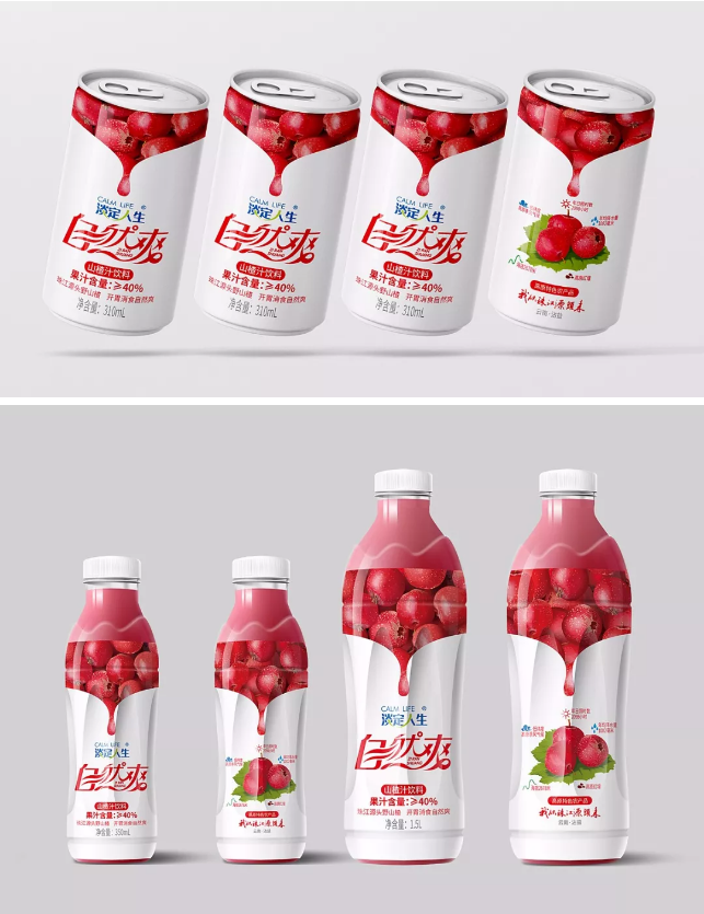 關(guān)于淡定人生·山泉水瓶型設(shè)計(jì)源自淡定人生品牌文化,以中國(guó)傳統(tǒng)文化中的太極為原型。自然爽果汁系列,含玉米、山楂、獼猴桃、芒果等,其中玉米汁與山楂汁以上市,其外包裝設(shè)計(jì)采用果實(shí)寫實(shí)手法表達(dá),在透露著果肉誘惑之際,傳遞出“七彩云南”之態(tài)。