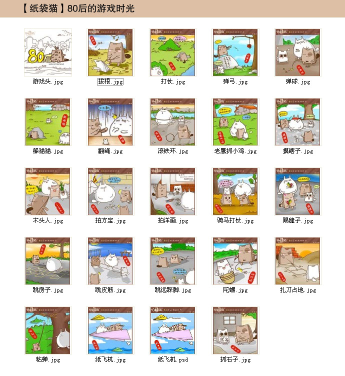 80后基本上都看過的動畫片有如下:《巴巴爸爸》、《聰明的一休》、《 花仙子》、《希瑞》、《忍者神龜》、《機器貓》、《藍精靈》、《貓和老鼠》、《變形金剛》、《圣斗士星矢》、《佐羅》、《藍寶石之謎》、《小恐龍丹佛》、《阿拉蕾》、《米老鼠》、《葫蘆兄弟》、《黑貓警長》、《大鬧天宮》、《雪孩子》、《神筆馬良》、《邋遢大王》、《舒克與貝塔》、《阿凡提》、《恐龍?zhí)丶壙少愄枴贰驗閷嵲谑翘?,所以沒有完全用紙袋貓的形象表現(xiàn)出來。