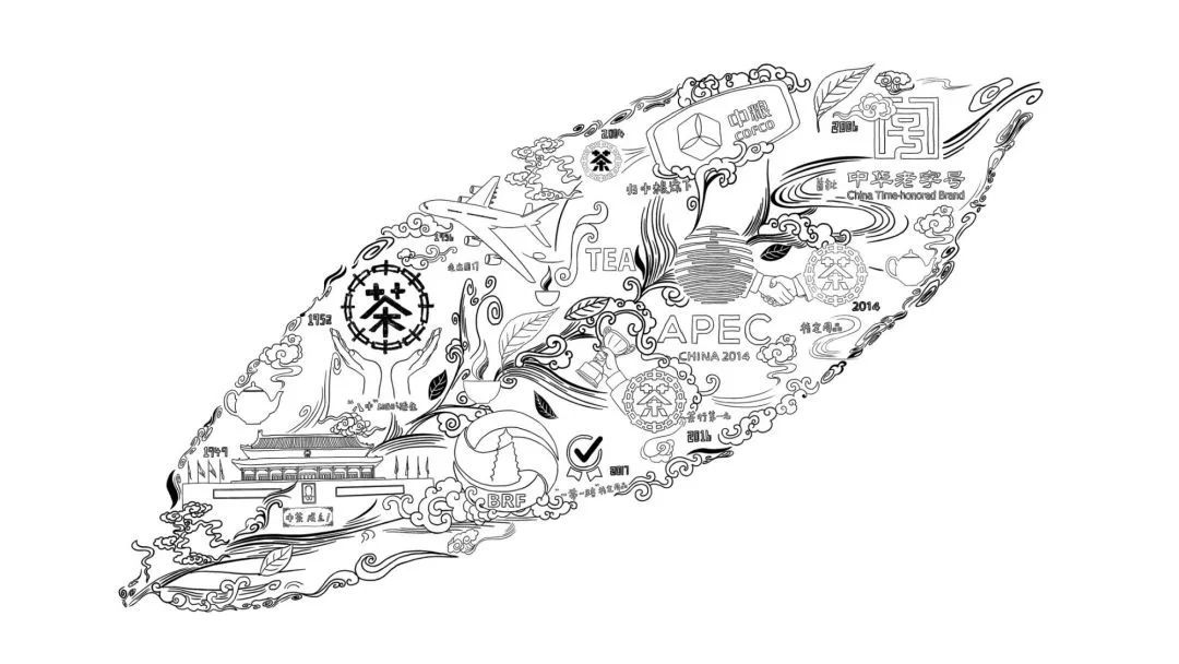 整體設(shè)計(jì)畫面將中茶歷史繪制在一片茶葉上