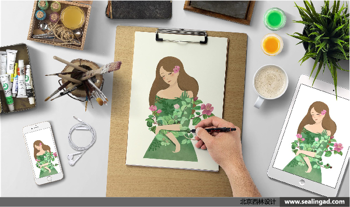 插畫采用水彩風(fēng)格,通過人物與植物自然親近的結(jié)合,傳達(dá)出舒適、健康、自然的視覺形象。