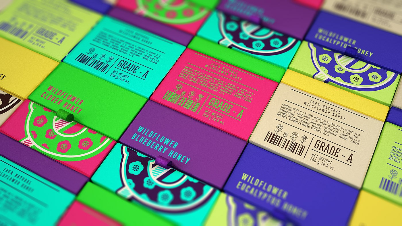 值得注意的是,這一系列包裝風(fēng)格大膽時(shí)尚,其色彩上也是非常明亮,給人感覺眼前一亮,不像傳統(tǒng)的蜂蜜,從此,直男們不要再說多喝開水,可以改為多喝蜂蜜水了