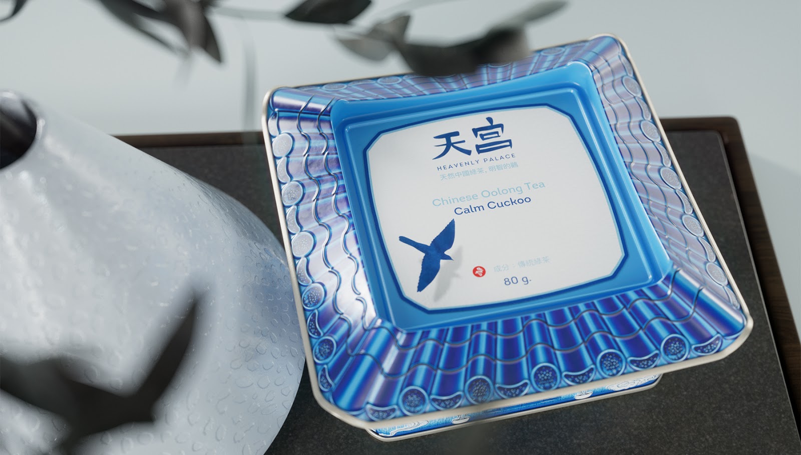 房屋的外墻裝飾有詳細的插圖,靈感來自古代大師的中國古典圖案。茶蒸云中的藝妓、竹瓦、中國燈籠——一切都適合平靜的思想和愉快的喝茶。產(chǎn)品線包括三個品種的中國傳統(tǒng)茶:經(jīng)典綠茶“智鸛”、烏龍茶“平靜杜鵑”和茉莉花綠茶。茶的品種以生活在中國的鳥類形象來比喻——聰明的鸛、平靜的杜鵑和自由的鴿子。設計師的想法是,一只飛過有蓋房子的鳥會投下陰影,房子越高,鳥到屋頂表面的距離越小,投下的陰影越短。